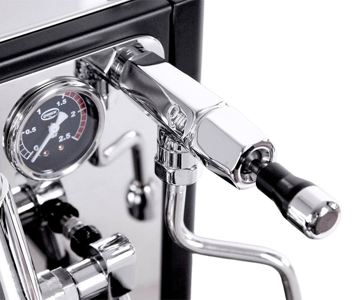 Separata mätare visar pumptryck (0–16 bar) och kokartryck (0–3 bar). Det ger perfekt överblick vid finjustering av extraktionen.