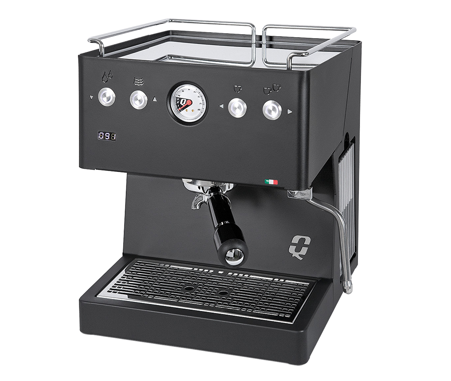 Material: Rostfritt stål; finns i stål, matt svart och vitt; Quick Mill-bryggrupp med O-ring; anti-burn ångstav