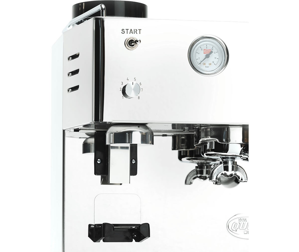 Material: Fullt rostfritt stål; Quick Mill-bryggrupp med O-ring; aerator-ångstav