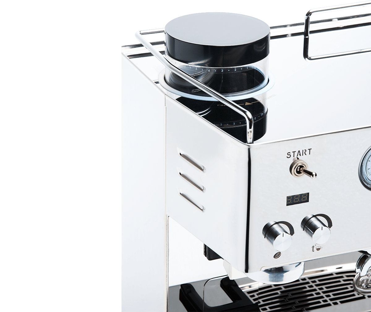 Med PID-reglage, tryckventil, malningsjustering, doskontroll och integrerad tamper får du en maskin byggd för precision och flexibilitet.