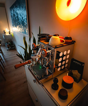 Rocket Appartamento av Rocket Espresso Miloano är en professionell kompakt espressomaskin som har en värmeväxlare, E61 grupp och en integrerad dubbel pre-infusion system. Den har ett starkt ångtryck för mjölkskumning, en rymlig vattentank och väldesignat chassi med hål vid sidan av maskinen med custom inlägg. Rocket Appartamento står ut ur massan med sin stilrena design och prestanda.