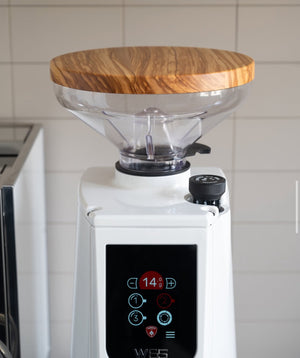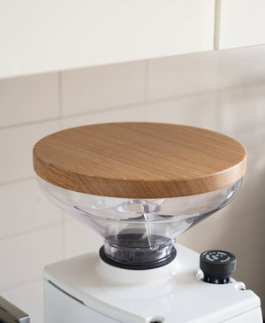 Uppgradera din kaffekvarn med en stilren grinder-lucka från Wiedemann Manufaktur. Handgjord i massivt trä och utformad för att passa Eureka Atom 300g-behållaren perfekt – både funktionellt och estetiskt.