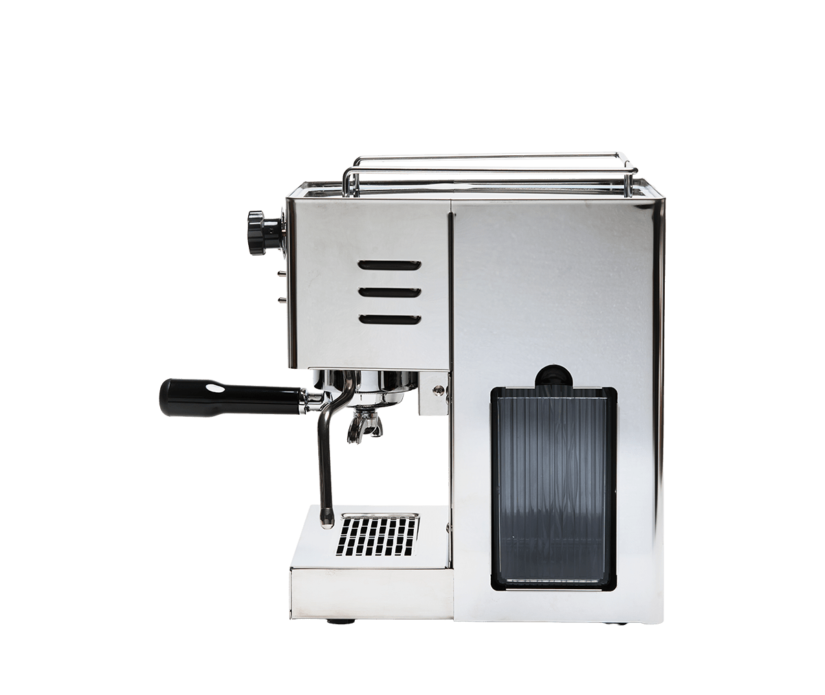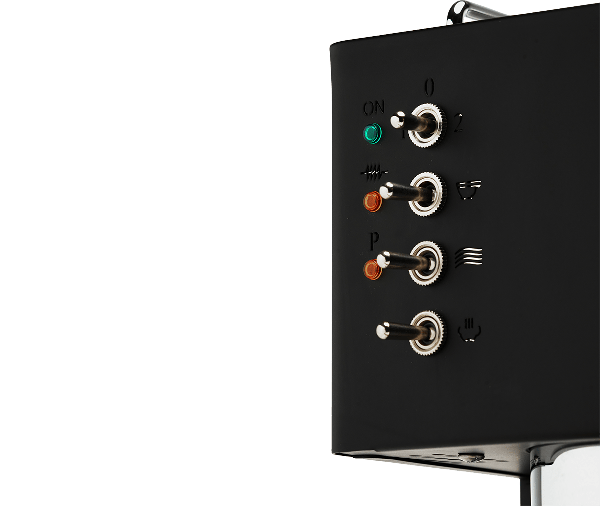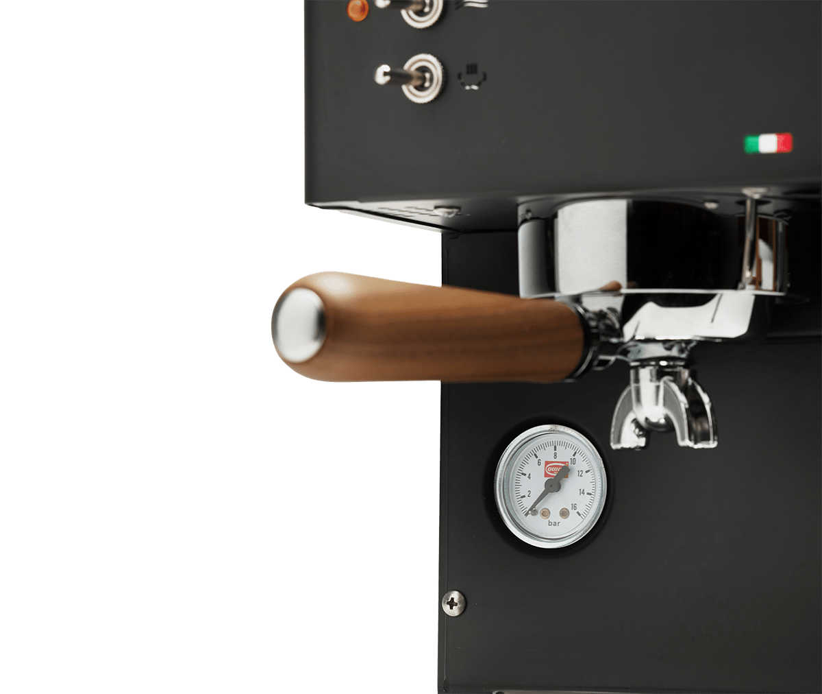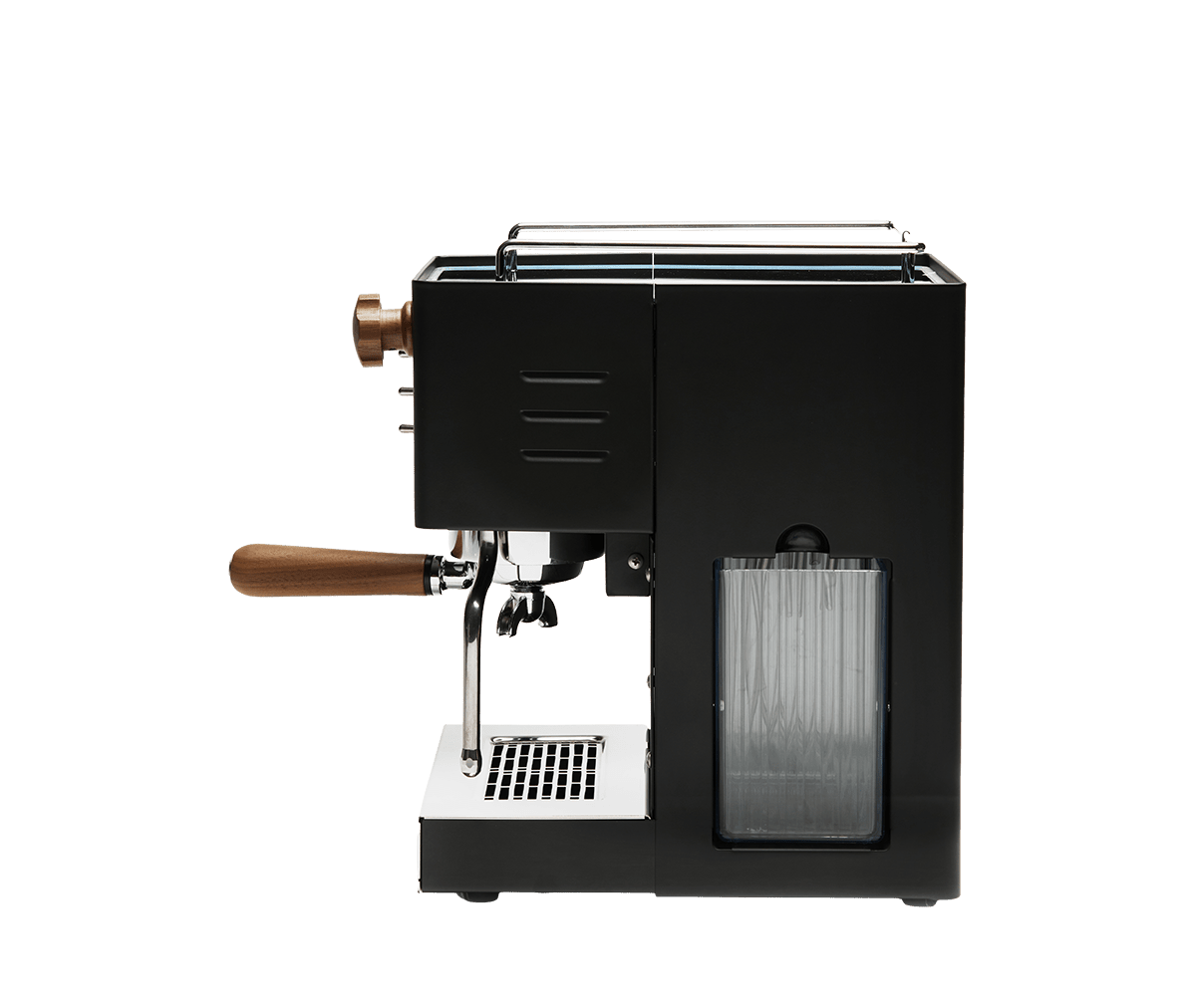 Chassi och yttre komponenter är tillverkade i rostfritt stål. Maskinen kommer även i mattsvart version med ångratt och portafilter i trä—perfekt för dig som gillar modern design.