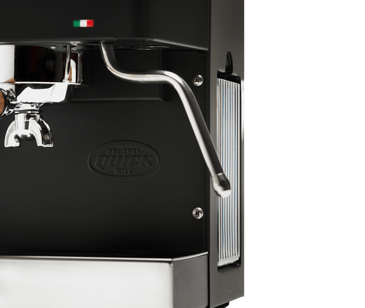 Quick Mills egen vibrationspump reducerar ljudnivån med ca 30 %, vilket ger en lugnare bryggupplevelse utan att kompromissa på tryck eller kvalitet.