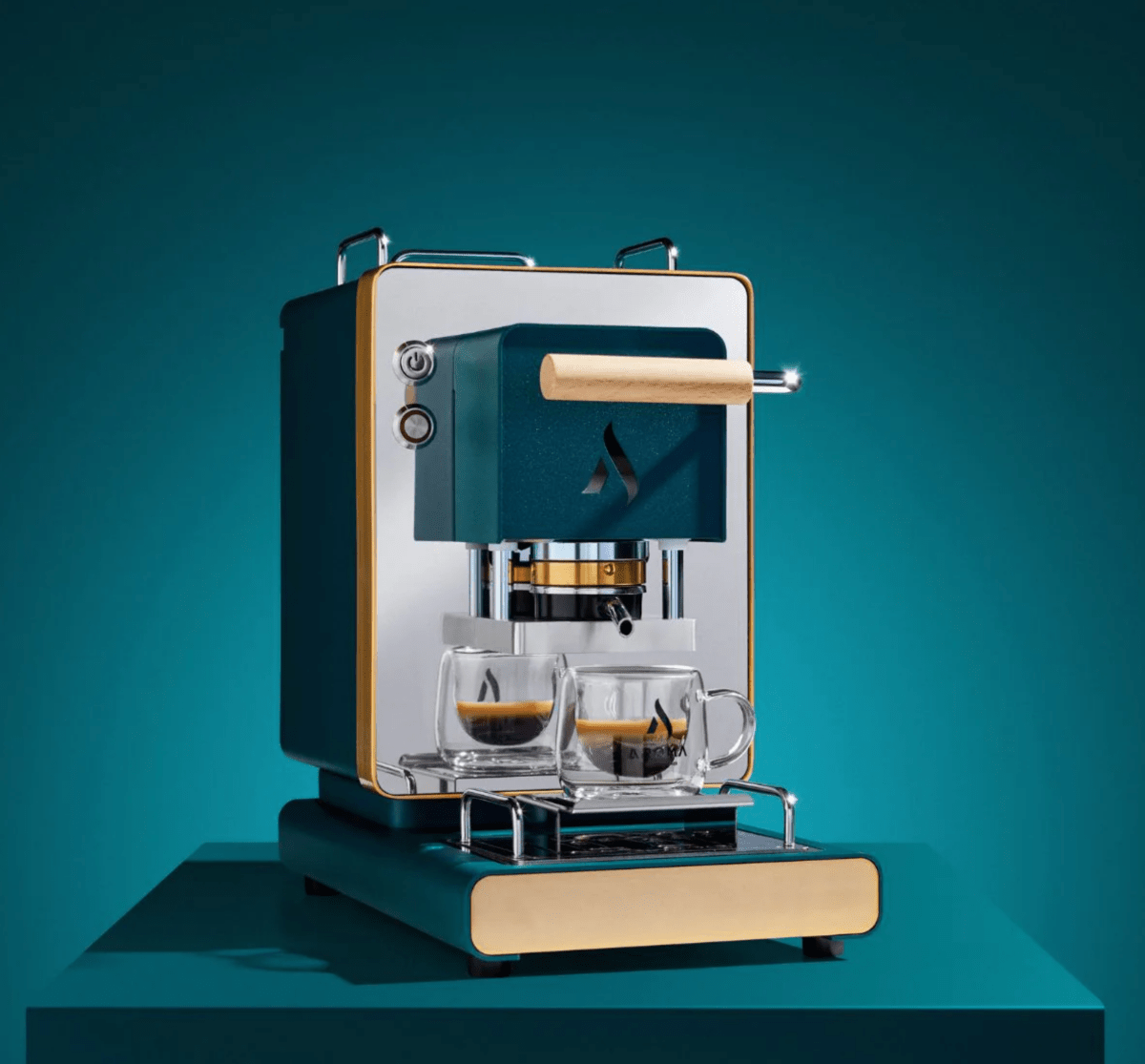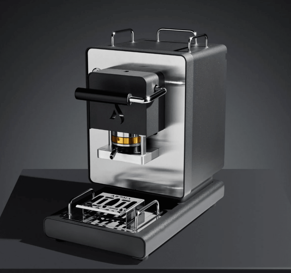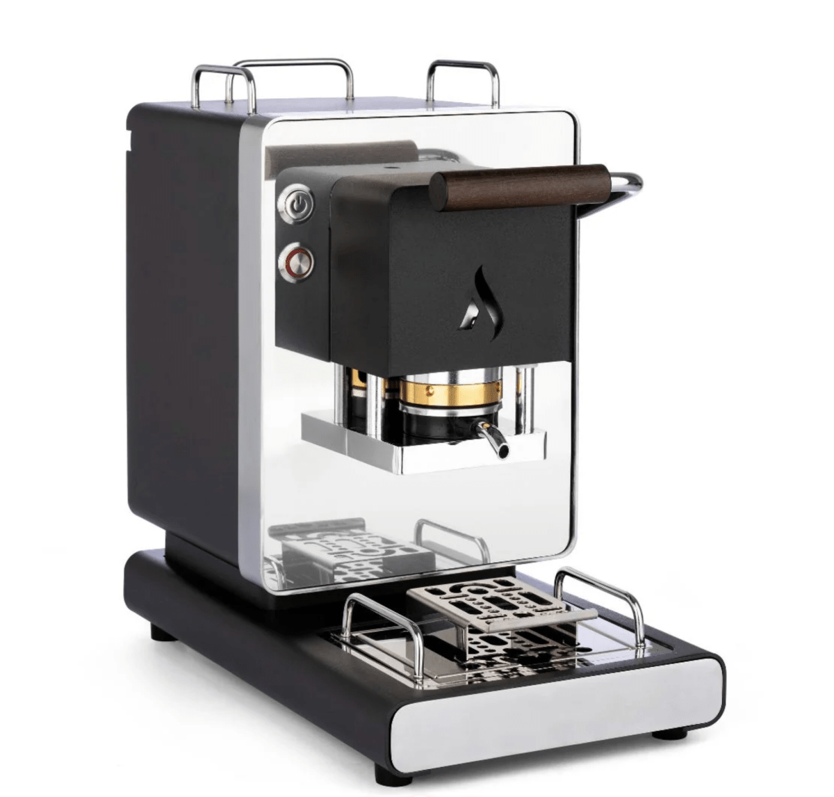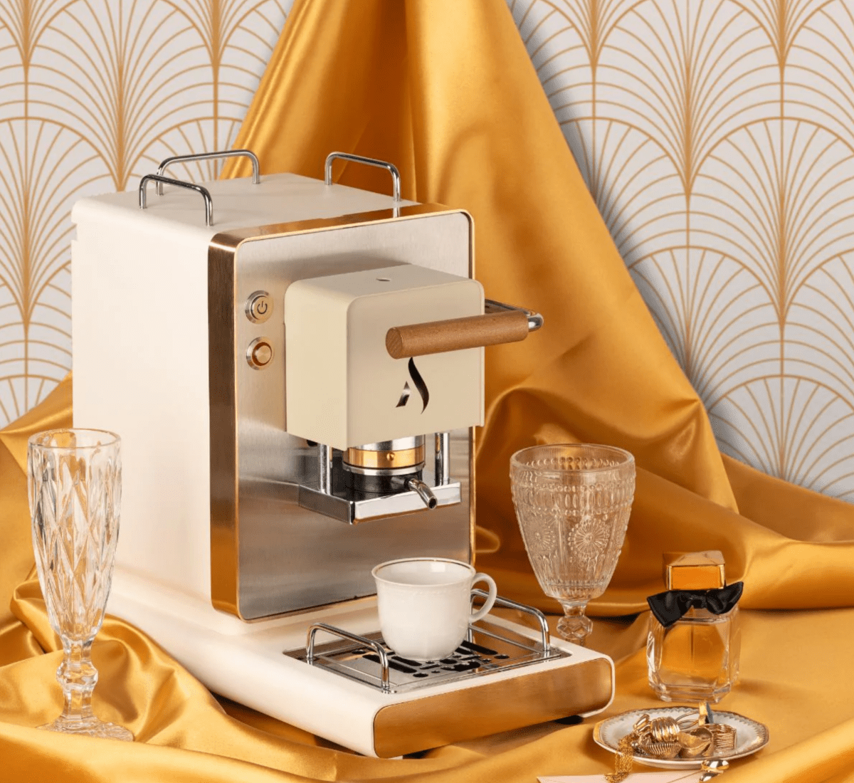 Maskinen har ett stilrent formspråk inspirerat av italiensk kaffekultur och passar perfekt i moderna kök.