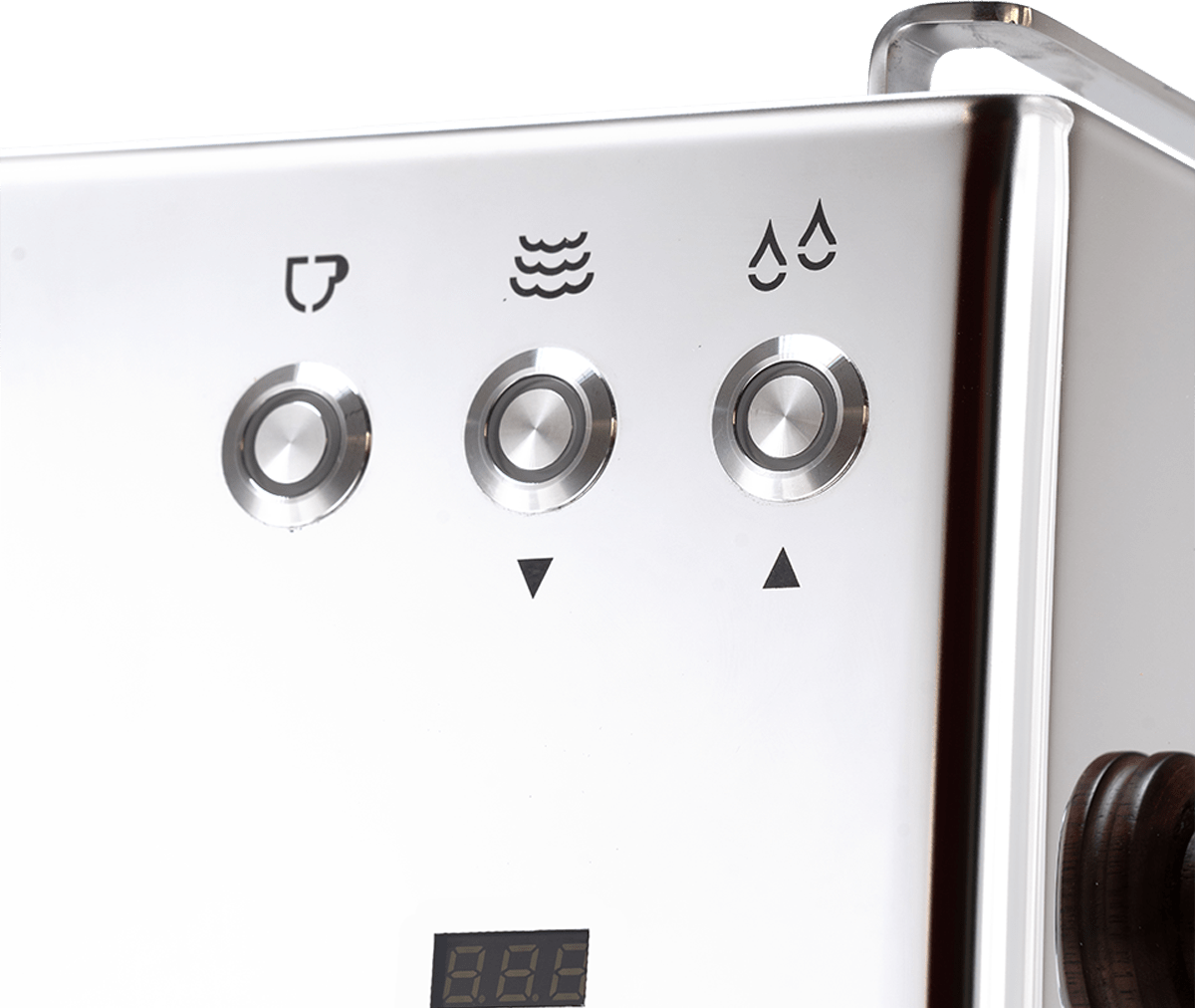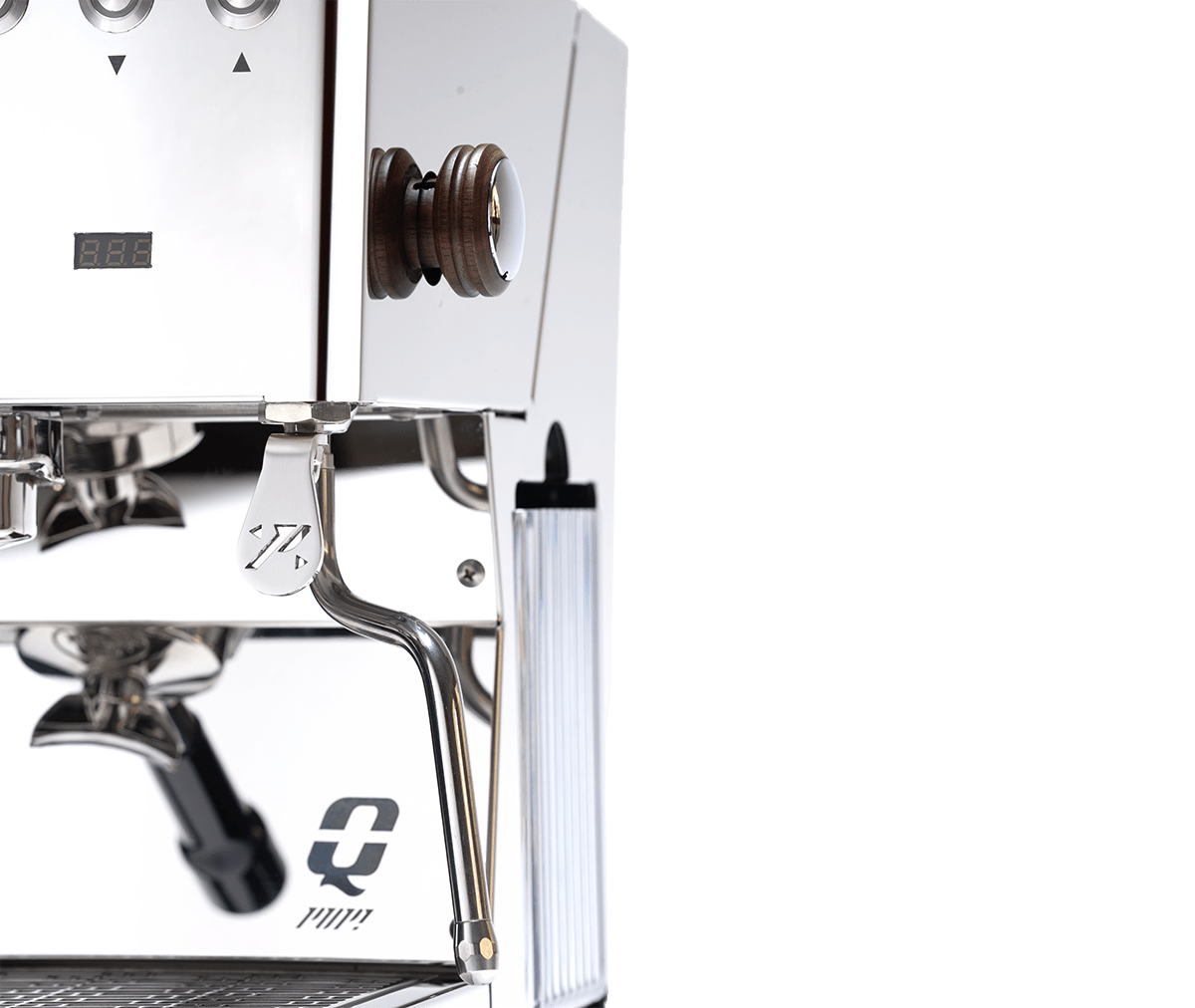 Ångstaven är multidirektionell och svalare att hantera, vilket gör mjölkskumning tryggare och enklare. Trädetaljen på ångrattet ger maskinen en varm och premium känsla.