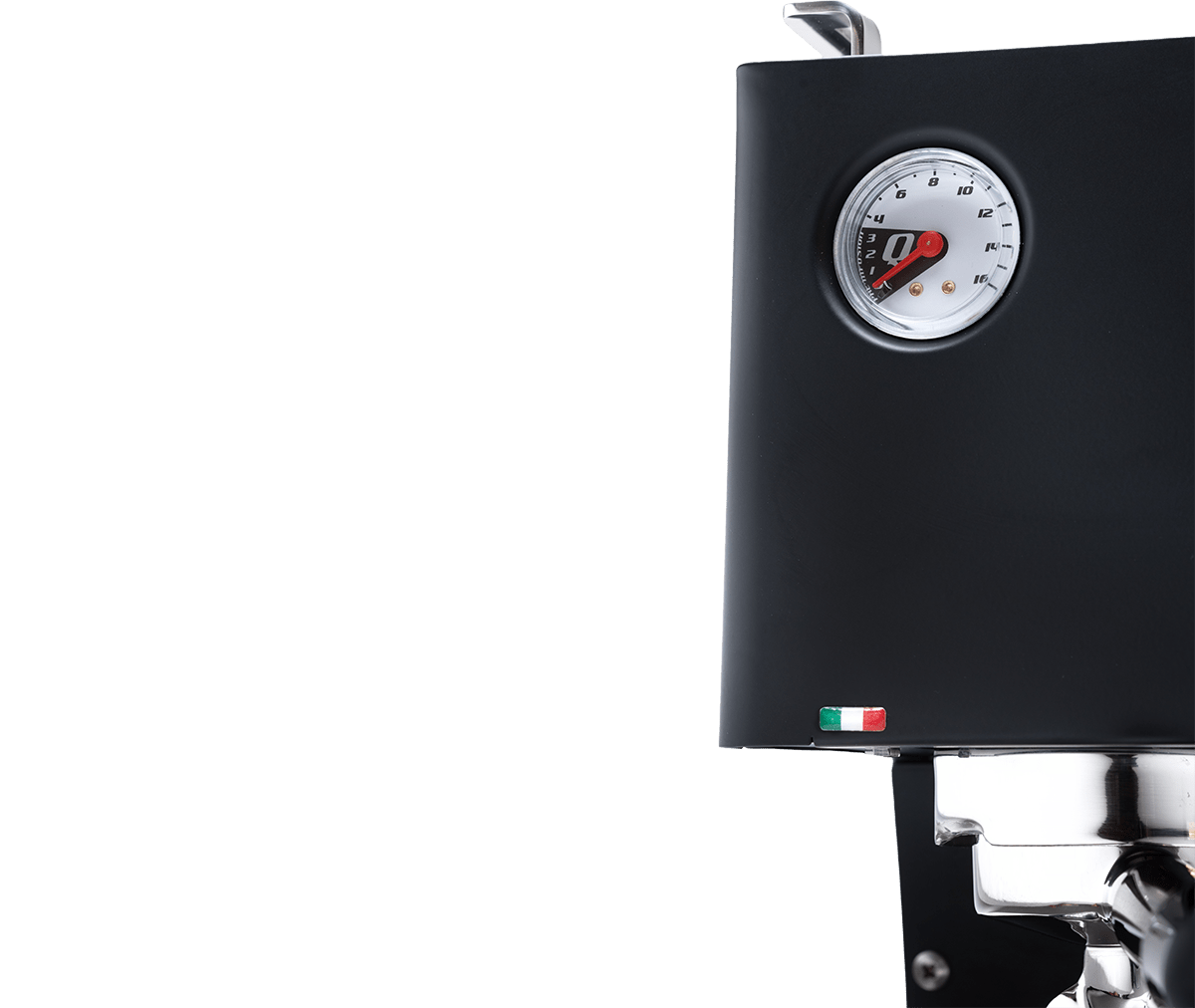 Material: Fullt rostfritt stål; finns i stål eller matt svart; Quick Mill-bryggrupp med O-ring; anti-burn ångstav