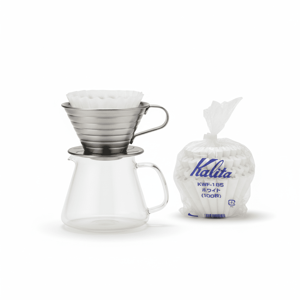 - Filterpapper (100 st.) – Naturligt blekta filterpapper för Kalita 185-serien, optimerade för en ren och balanserad kopp kaffe. Perfekt för 2–4 koppar.