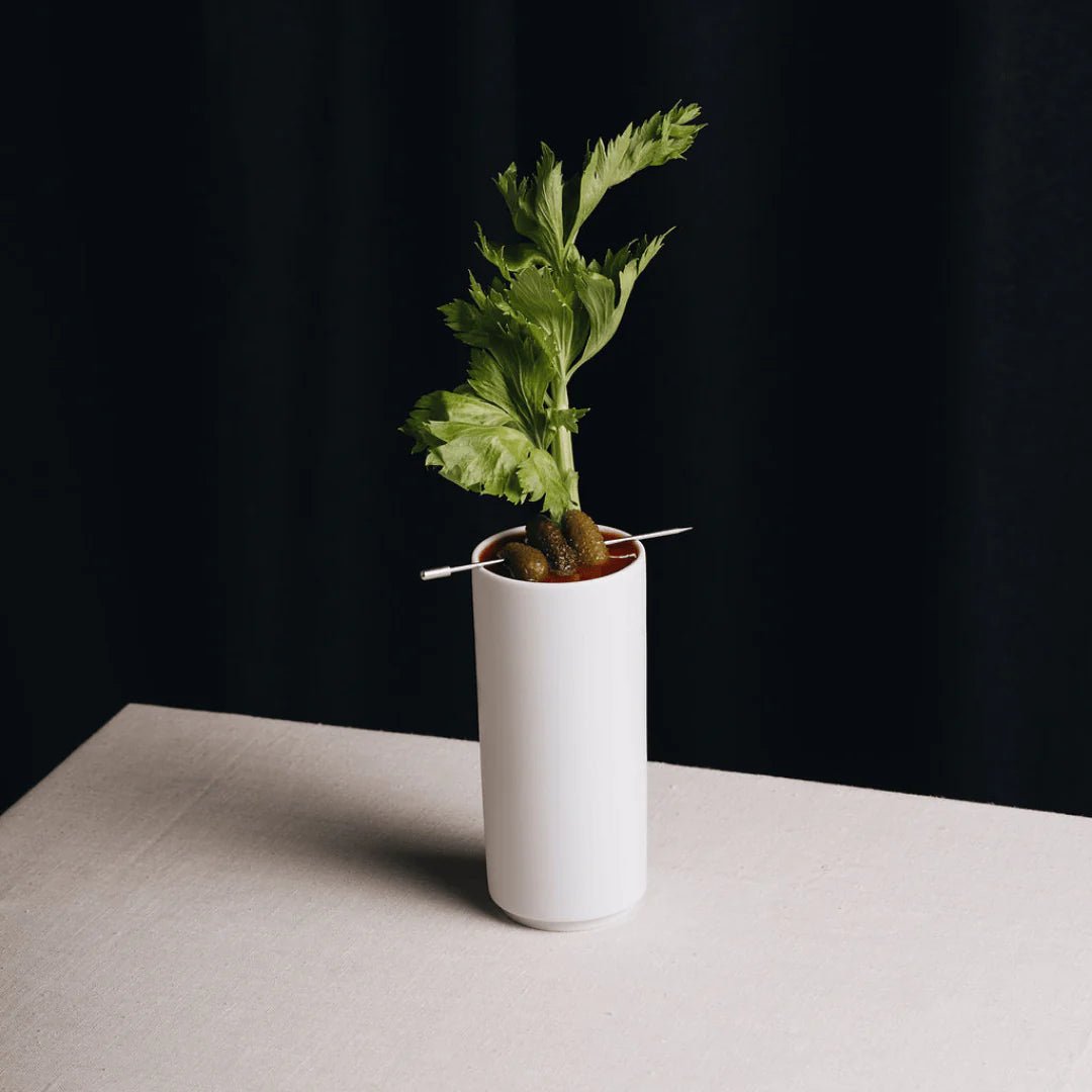 Tillverkad i slitstarkt porslin med utmärkta termiska egenskaper hjälper koppen till att hålla kalla drycker kalla och varma drycker varma längre. Den handpolerade, matta utsidan ger ett mjukt och kontrollerat grepp, medan den glaserade insidan skapar en jämn yta som gör varje upphällning följsam och exakt.