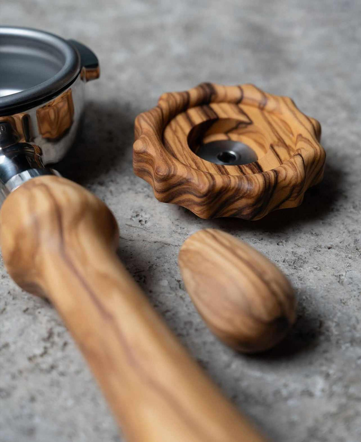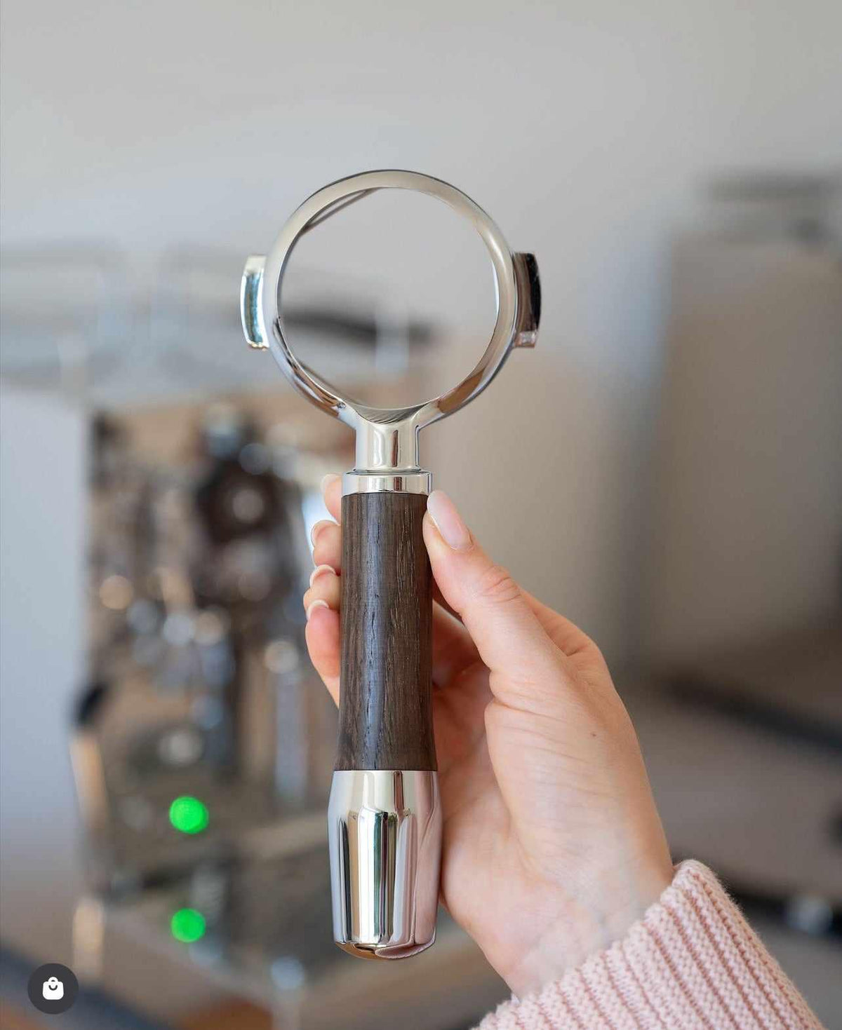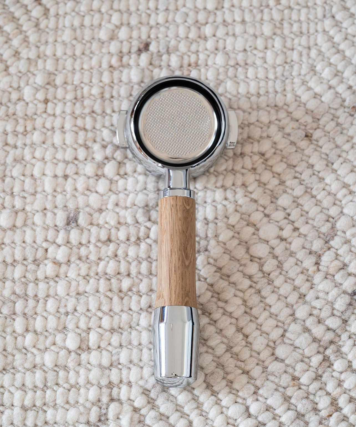 Vårt handtag med designen "Elegant" kommer med original portafilterhuvuden från ECM, medan alla andra portafilter har portafilterhuvuden i rostfritt stål. Varje dag ger vårt handtag en haptisk upplevelse som är enastående. Vårt trä behandlas för hand med organisk hårdolja, så att den naturliga känslan i träet bevaras.
